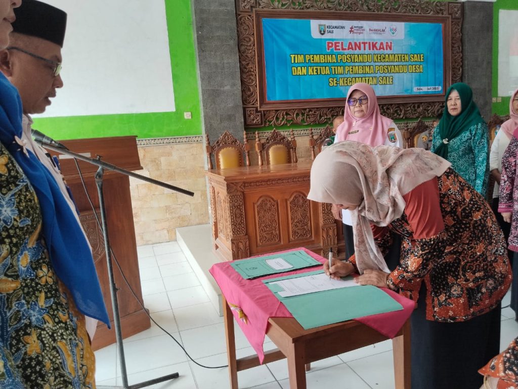 Pelantikan Tim Pembina Posyandu dan Bunda Literasi adalah langkah awal dalam upaya untuk meningkatkan kualitas kesehatan dan pendidikan di Wilayah Kecamatan Sale. Dengan peran aktif dan inofatif dari Bunda-bunda Literasi diharapkan budaya literasi di Indonesia semakin meningkat dan memberikan dampak positif bagi kemajuan bangsa dan masyarakat di Kecamatan Sale pada khususnya. Dalam Pidatonya Bapak Camat Sale Moh. Imron, SH mengucapkan selamat kepada seluruh anggota tim Pembina posyandu dan Bunda Literasi yang baru saja dilantik, dengan diberikanya amanah dan tanggung jawab tersebut diharapkan terjadi kebersamaan dan kerjasama yang solid sehingga mampu menjalankan tugas dengan sebaik baiknya. (Sale, 23 Juli 2025)