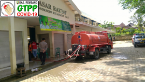 Penyemprotan Fasilitas Umun oleh Gugus Tugas Covid 19 Kecamatan Sale dan BPDB Kabupaten Rembang Bulan April 2020